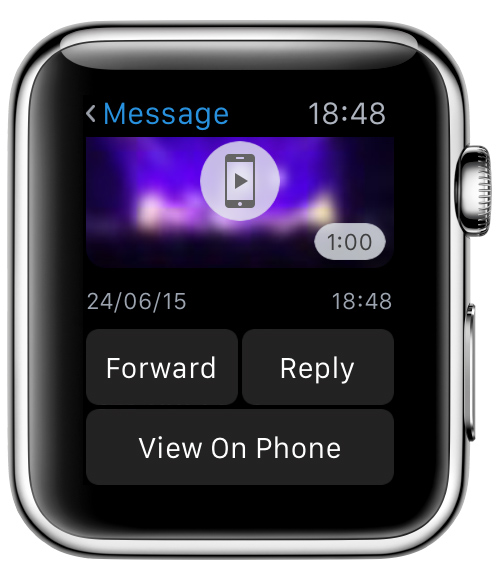 Chats on your Apple Watch will show all the content available on Telegram: photos, stickers, locations, documents and videos. For those cases when the watch can‘t handle something, we’ve added a shortcut to easily open any message on your Phone.
