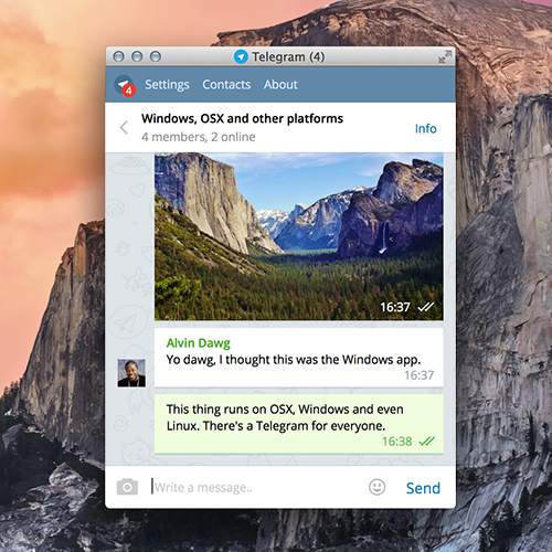 To log in on your computer, simply enter your phone number and get a code delivered via Telegram to your phone. All your messages (except those from Secret Chats) are instantly synced between all your devices, so you can continue right where you left off.