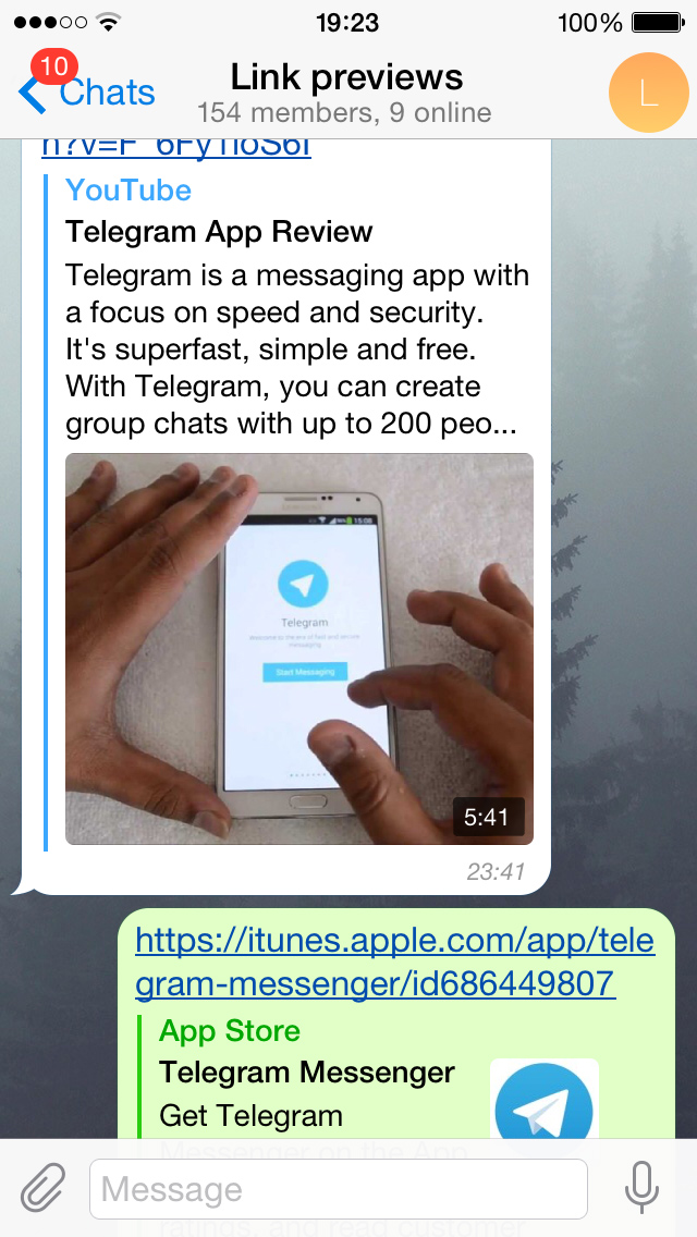 Once you paste a URL to the message input field, Telegram will start analyzing the link and getting a preview for it. If you prefer to send a particular message without the preview, just tap the x to remove it.