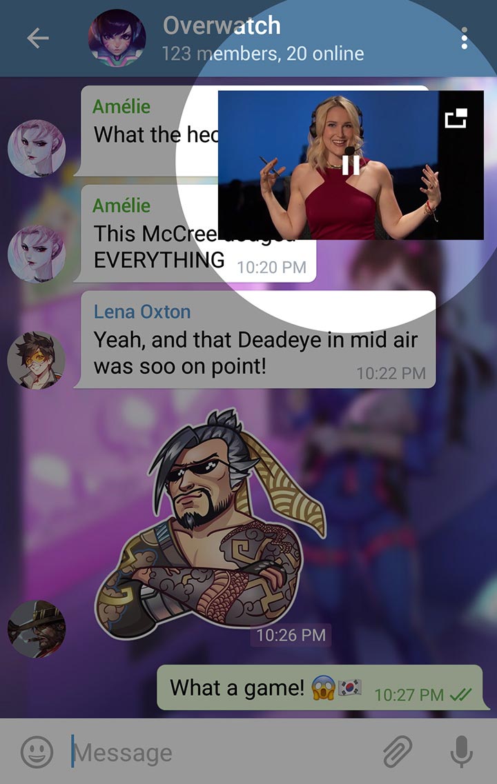 2. Want to continue chatting while watching a YouTube video? Tap the Picture-In-Picture icon in the new sleek video player for YouTube/Vimeo links. The video will shrink, and you can drag it around the screen so that it doesn't get in the way. The new video player also toggles fullscreen mode when you rotate your phone accordingly.