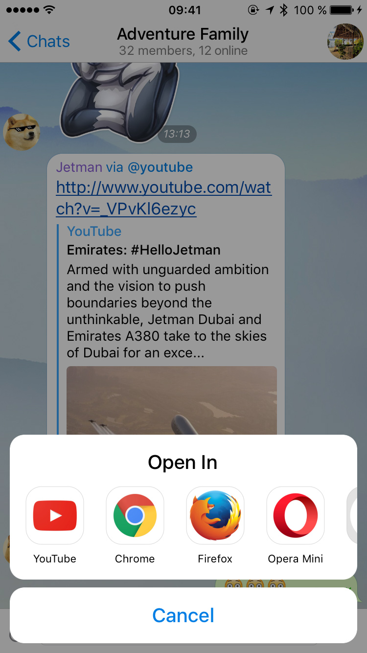 Starting today, our iOS users can easily share photos and videos to other Telegram chats with a comment, or send them to other apps.