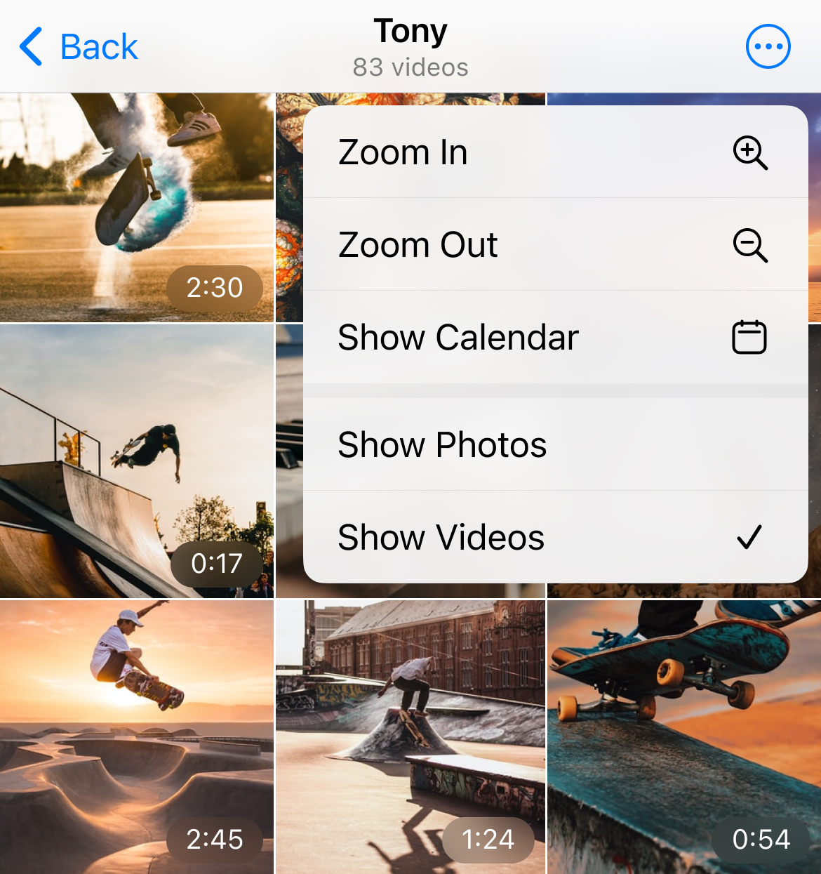 В меню также можно выбрать, какие материалы будут показаны на вкладке «Медиа» — только фотографии, только видеозаписи или и то и другое.