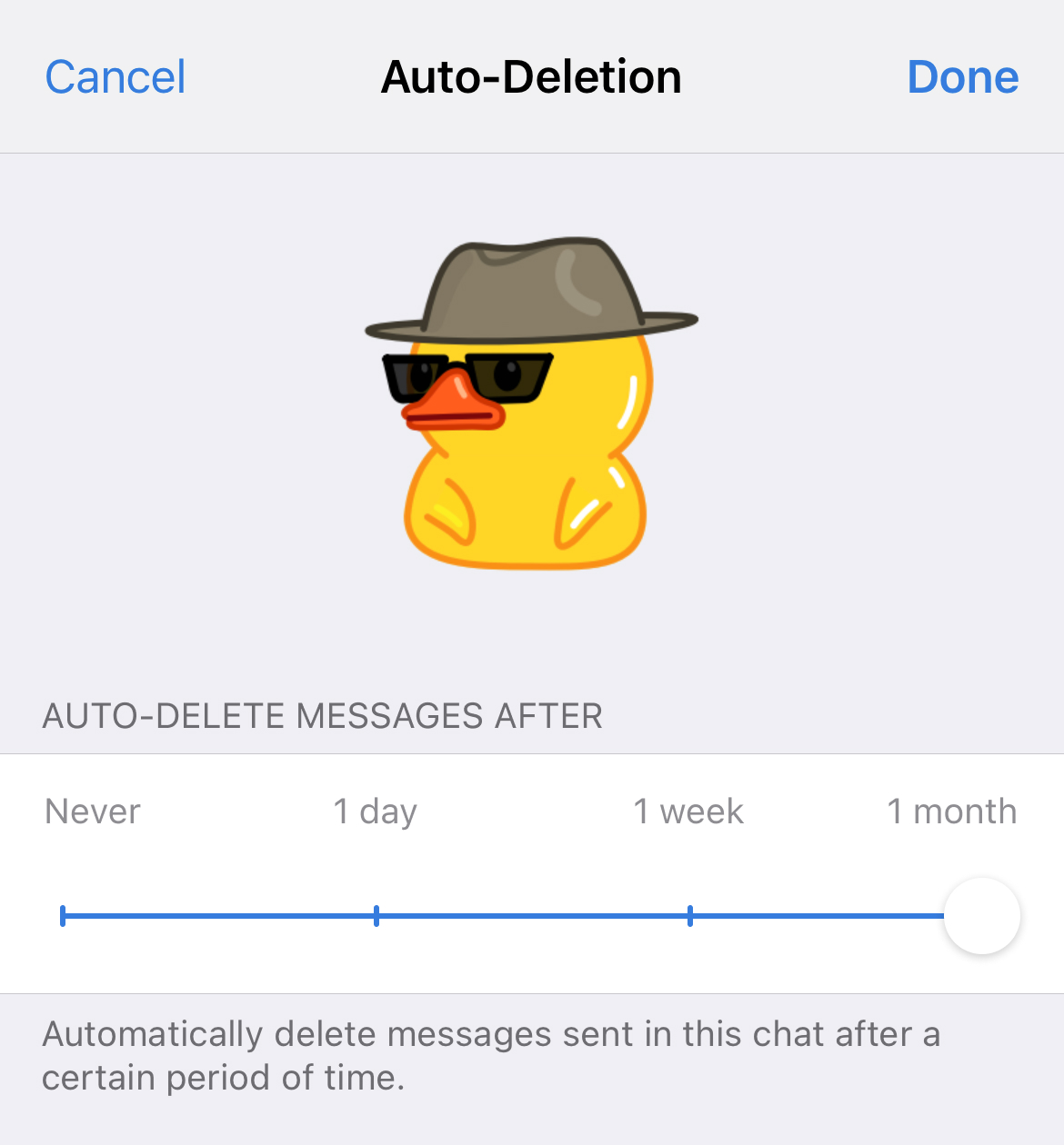 Таймер автоматичного видалення повідомлень у чатах тепер можна встановити на 1 місяць — на додачу до 1 дня та 1 тижня.
